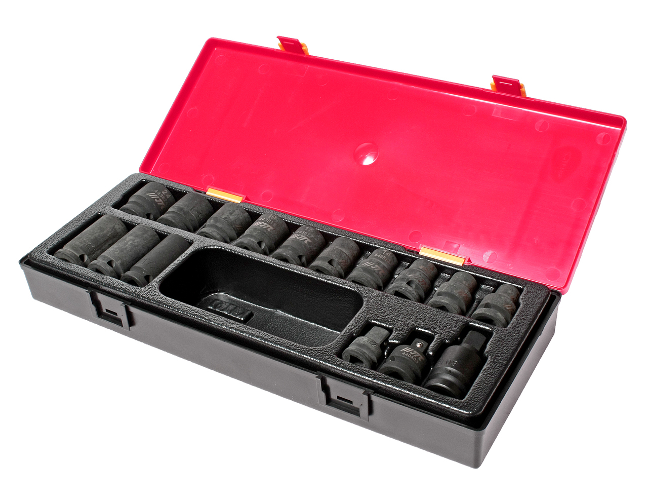 Артикулы JTC-443810-24: 1/2" DR.6PT ударная головка: 10 мм., 12 мм., 13 мм., 14 мм., 15 мм., 17 мм., 19 мм., 21 мм., 22 мм., 24 мм. - 10 шт.