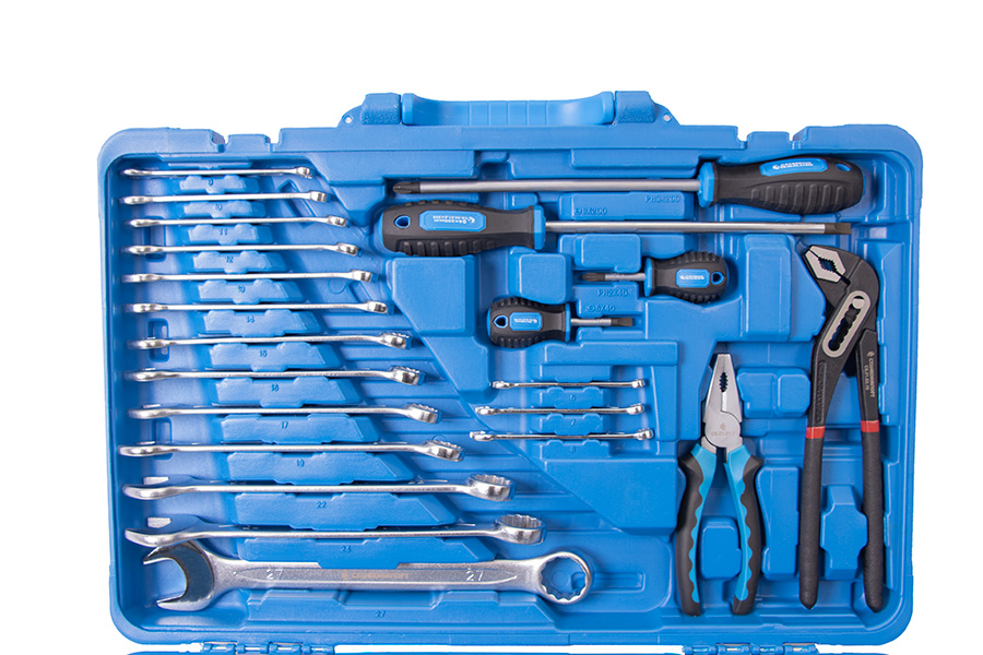 Назначение: В наборе собраны инструменты общего назначения, необходимые для работы в гараже, мастерских и автосервисе. Описание: Инструменты производятся из хромванадиевой стали. Ручки трещотки, шарнирно-губцевого инструмента, отверток изготовлены из маслобензостойкого материала. Рациональное размещение инструментов в кейсе обеспечивает удобство хранения и транспортировки. Сами инструменты расположены в индивидуальных подписанных ячейках, снабженных фиксаторами. Инструмент профессионального уровня, соответствует стандартам ГОСТ и DIN. Имеет высокий ресурс, позволяя не беспокоиться о покупке нового инструмента, взамен вышедшего из строя. Особенности: Головки имеют однородное высококачественное покрытие Soft Matt, обеспечивающие надежную защиту от царапин и коррозии. Снабжены специальными фрикционными насечками, предотвращающими выскальзывание из рук. Анатомическая двухкомпонентная рукоятка трещотки изготовлена из маслобензостойкого материала, что делает работу с инструментом комфортной. Соответствует немецким стандартам DIN и сохраняет работоспособность при превышении нагрузки на 70%. Комплектация: НаименованиеОписание торцевые головки 1/4"4-13 мм ключ трещоточный с быстрым сбросом 1/4" 72 зуба отверточная рукоятка 1/4"150 мм вороток Т-образный 1/4"110 мм удлинители 1/4"50, 100 мм гибкий удлинель 1/4"150 мм кардан шарнирный 1/4"40 мм битодержатель 1/4"х 1/4"25 мм биты 1/4": - шестигранные HEX3, 4, 5, 6, 7 мм - шлицевые SlotSL3, SL4, SL5.5, SL7 - крестовые PhilipsPH0, PH1, PH2, PH3 - крестовые PozidrivPZ1, PZ2, PZ3 - TorxT10, T15, T20, T25, T27, T30, торцевые головки 1/2"10-24, 27, 30, 32 мм ключ трещоточный с быстрым сбросом 1/2" 72 зуба вороток шарнирный 1/2"375 мм удлинители 1/2"75, 250 мм головки свечные 1/2"16, 21 мм НаименованиеОписание кардан шарнирный 1/2"75 мм битодержатель 1/2"х 5/16"40 мм биты 5/16": - шестигранные HEX, длинные 75 мм4, 5, 6, 7, 8, 10, 12 мм - шлицевые SlotSL4, SL5.5, SL7 - крестовые PhilipsPH1, PH2, PH3 ...