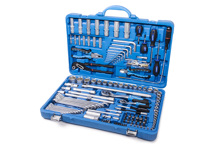 В наборе собраны инструменты общего назначения, необходимые для работы в гараже и автосервиса.