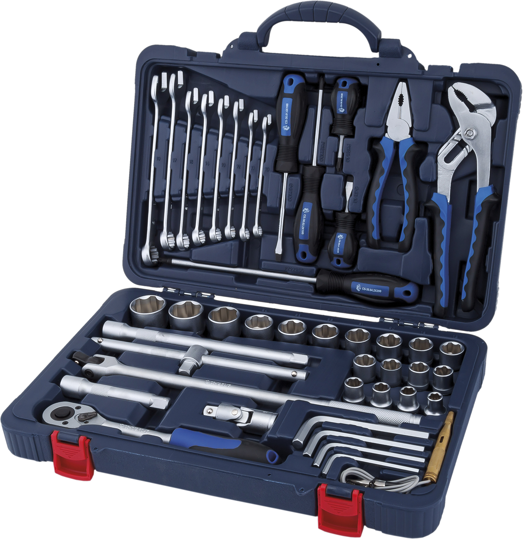 В наборе собраны инструменты общего назначения, необходимые для работы в гараже и быту.