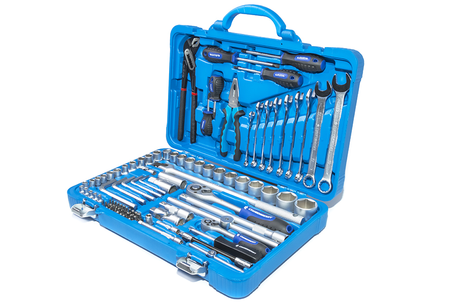 Назначение: В наборе собраны инструменты общего назначения, необходимые для работы в гараже и быту. Описание: Инструменты производятся из хромванадиевой стали. Ручки трещотки, шарнирно-губцевого инструмента, отверток изготовлены из маслобензостойкого материала. Рациональное размещение инструментов в кейсе обеспечивает удобство хранения и транспортировки. Сами инструменты расположены в индивидуальных подписанных ячейках, снабженных фиксаторами. Инструмент профессионального уровня, соответствует стандартам ГОСТ и DIN. Имеет высокий ресурс, позволяя не беспокоиться о покупке нового инструмента, взамен вышедшего из строя. Особенности: Головки имеют однородное высококачественное покрытие Soft Matt, обеспечивающее надежную защиту от царапин и коррозии. Снабжены специальными фрикционными насечками, предотвращающими выскальзывание из рук. Анатомическая двухкомпонентная рукоятка трещотки изготовлена из маслобензостойкого материала, что делает работу с инструментом комфортной. Соответствует немецким стандартам DIN и сохраняет работоспособность при превышении нагрузки на 70%. Комплектация: НаименованиеОписание торцевые головки 1/4"4, 4.5, 5, 5.5, 6-13 мм ключ трещоточный с быстрым сбросом 1/4"45 зубов вороток Т-образный 1/4"110 мм отверточная рукоятка 1/4"150 мм удлинители 1/4"50, 100 мм гибкий удлинитель 1/4"150 мм кардан шарнирный 1/4"40 мм битодержатель 1/4"х 1/4"25 мм биты 1/4": - шестигранные HEX 2, 3, 4, 5, 6, 7 мм - шицевые SlotSL3, SL4, SL5.5, SL7 - крестовые PhilipsPH0, PH1, PH2, PH3 - крестовые PozidrivPZ2, PZ3 - TORXT10, T15, T20, T25, T30 адаптер 1/4"HEX х1/4"25 мм НаименованиеОписание торцевые головки 1/2"8, 10, 12-24, 27, 30, 32 мм ключ трещоточный с быстрым сбросом 1/2"72 зуба вороток шарнирный 1/2"375 мм удлинитель-вороток Т-образный 1/2"250 мм удлинители 1/2"75, 250 мм головки свечные 1/2"16, 21 мм кардан шарнирный 1/2"75 мм ключи комбинированные8, 10-15, 17, 19 мм угловые шестигранные ключи5, 6, 7, 8, 10 мм клещи переставные10"/250 мм пассатижи7"/180 мм ...