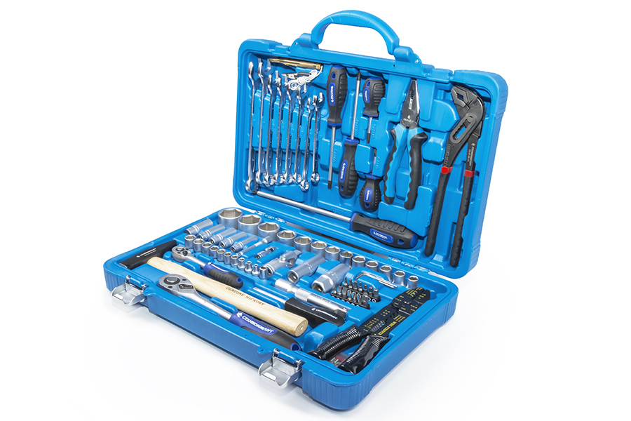 В наборе собраны инструменты общего назначения, необходимые для работы в гараже и быту.