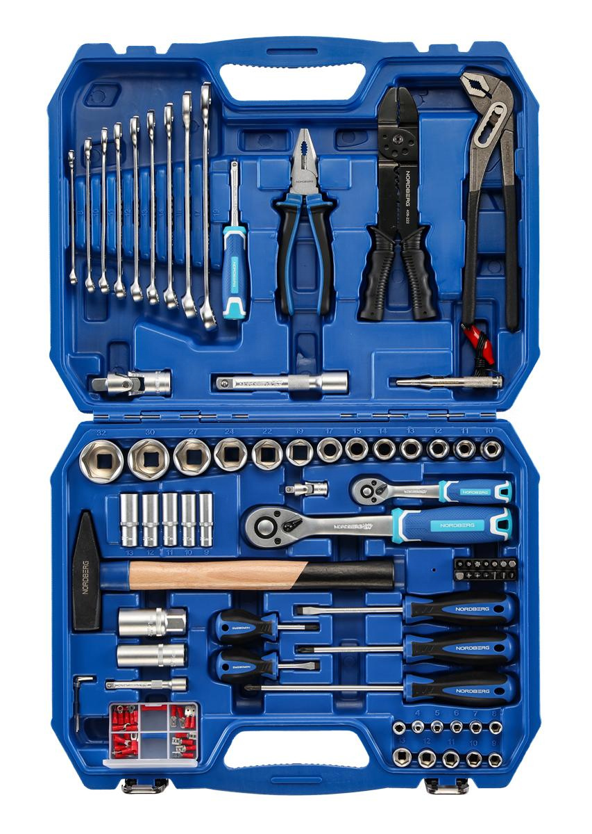 NORDBERG 2496100C — универсальный набор инструментов предназначен для выполнения работ различной сложности. Подходит для профессионального и бытового применения. Прочный кейс оснащён рукояткой для удобной транспортировки и хранения инструмента.
