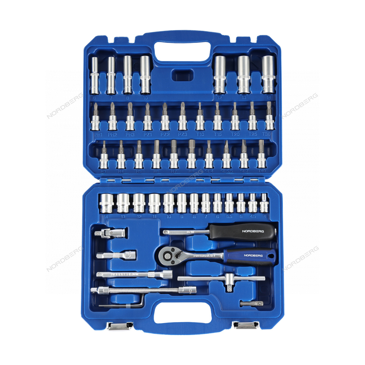 NORDBERG 2296052C — Универсальный набор инструментов предназначен для выполнения работ различной сложности. Подходит для профессионального и бытового применения. Прочный кейс оснащён рукояткой для удобной транспортировки и хранения инструмента.
