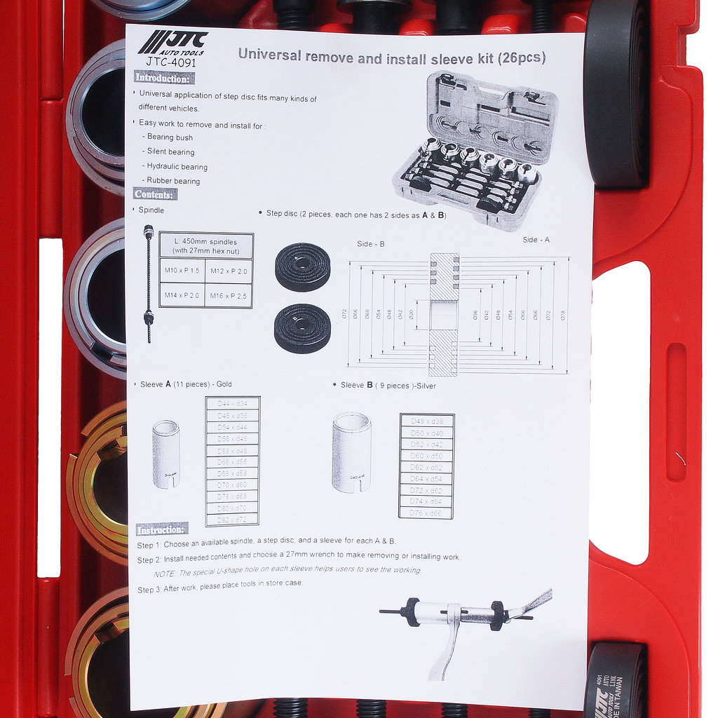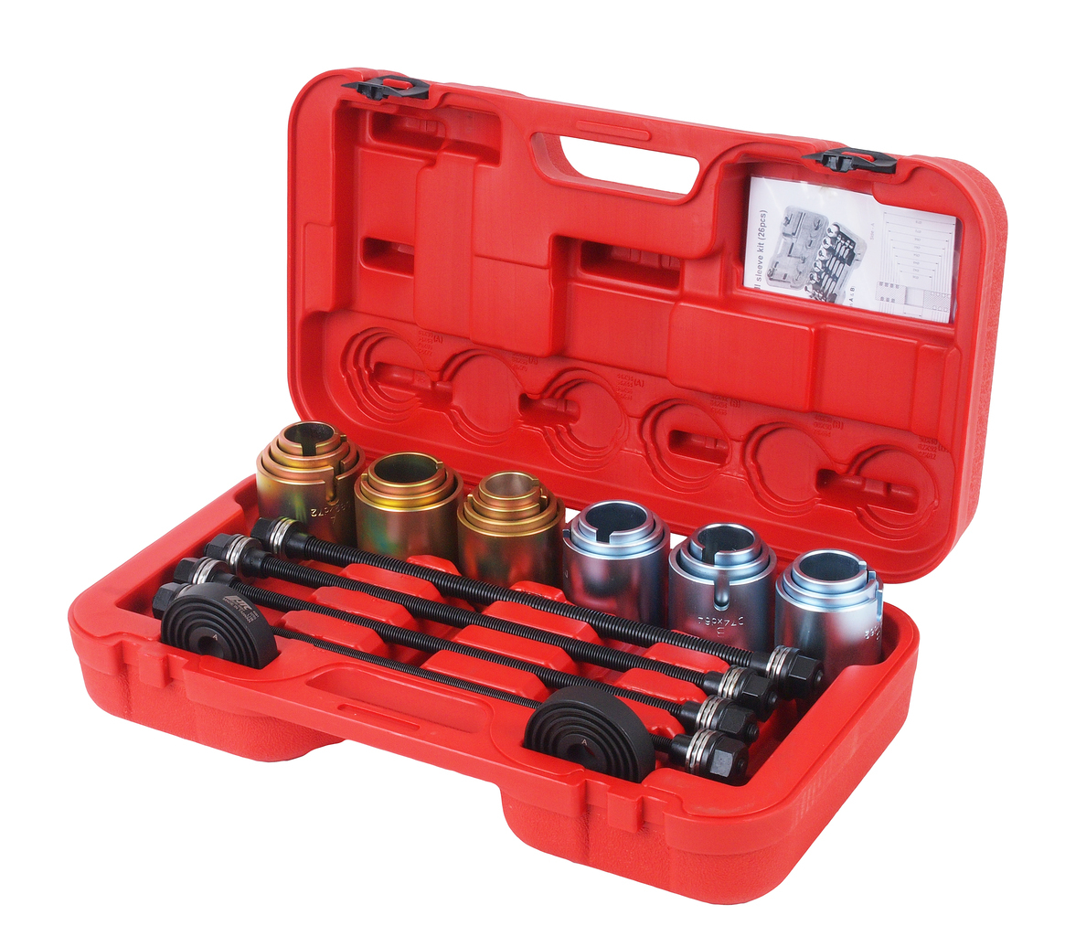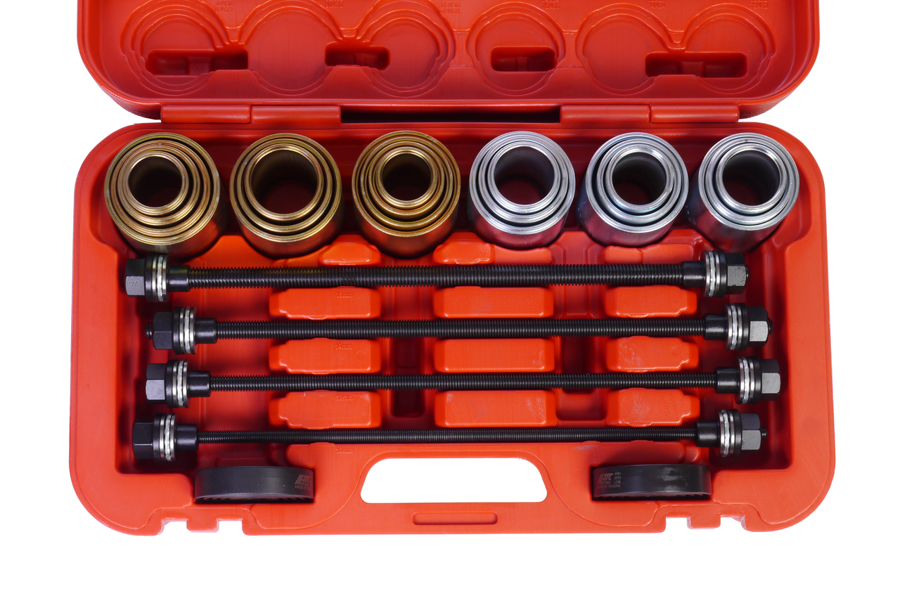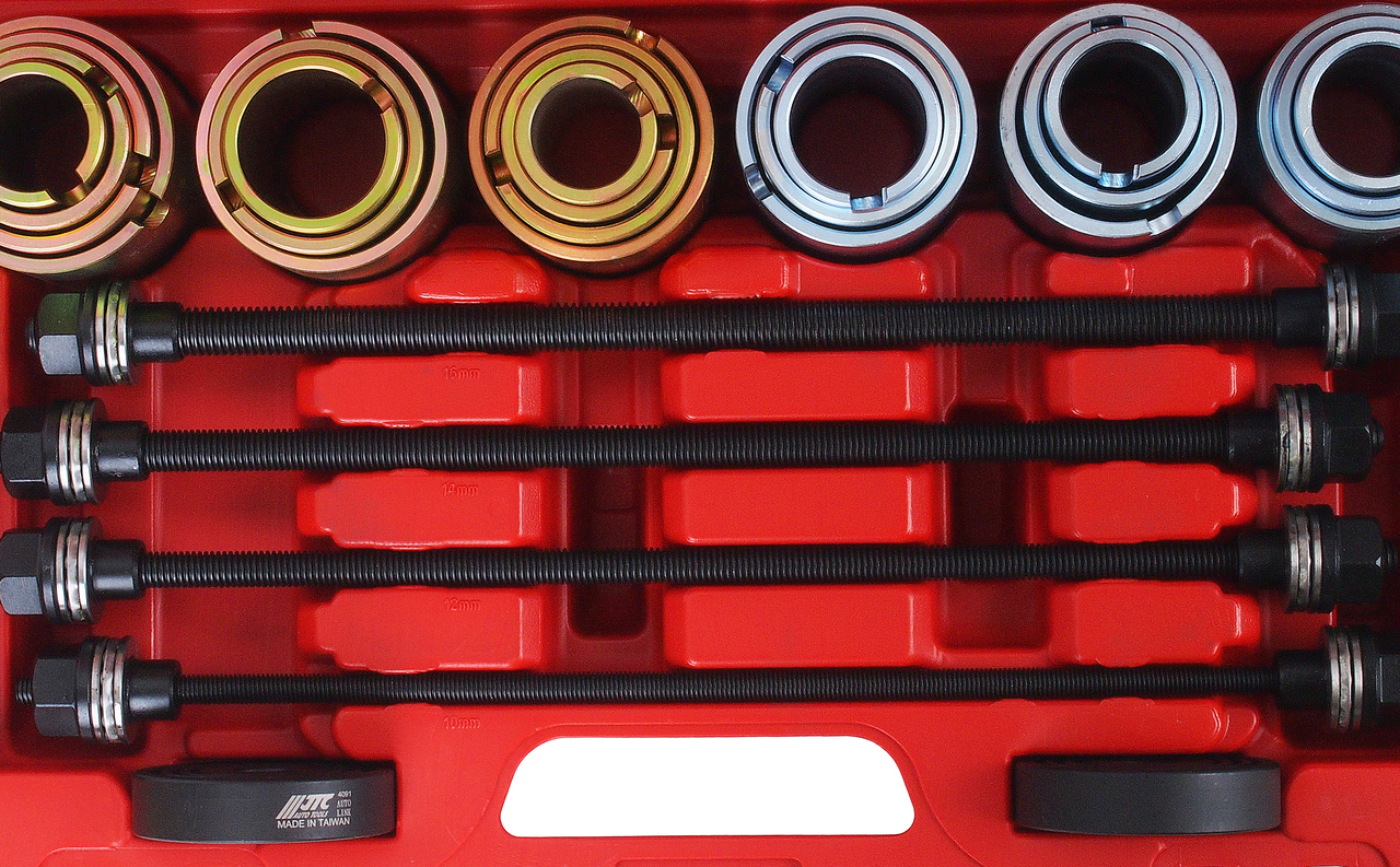 Универсальный набор используется для снятия и установки сайлентблоков и резиновых втулок.
