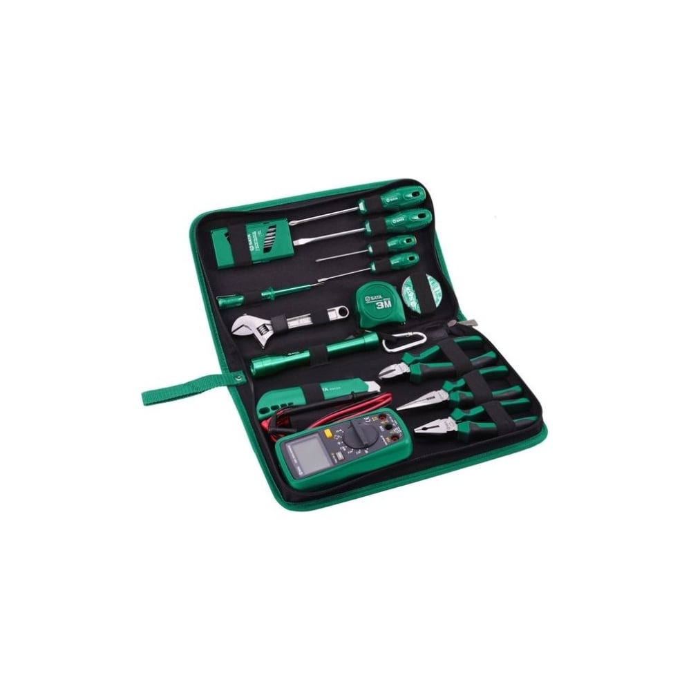 Этот набор отличается простотой и удобством в использовании, что делает его идеальным для ежедневного применения. Инструменты, входящие в комплект, выполняют множество функций, включая проверку электропроводки, соединение проводов, измерение мощности, установку освещения и другие задачи, с которыми сталкиваются электрики.Специально разработанная сумка с молнией выполнена из прочного водонепроницаемого нейлонового материала и легко моющейся кожи. Это обеспечивает сохранность и удобство хранения всего набора. На данный товар действует условие безусловного возврата