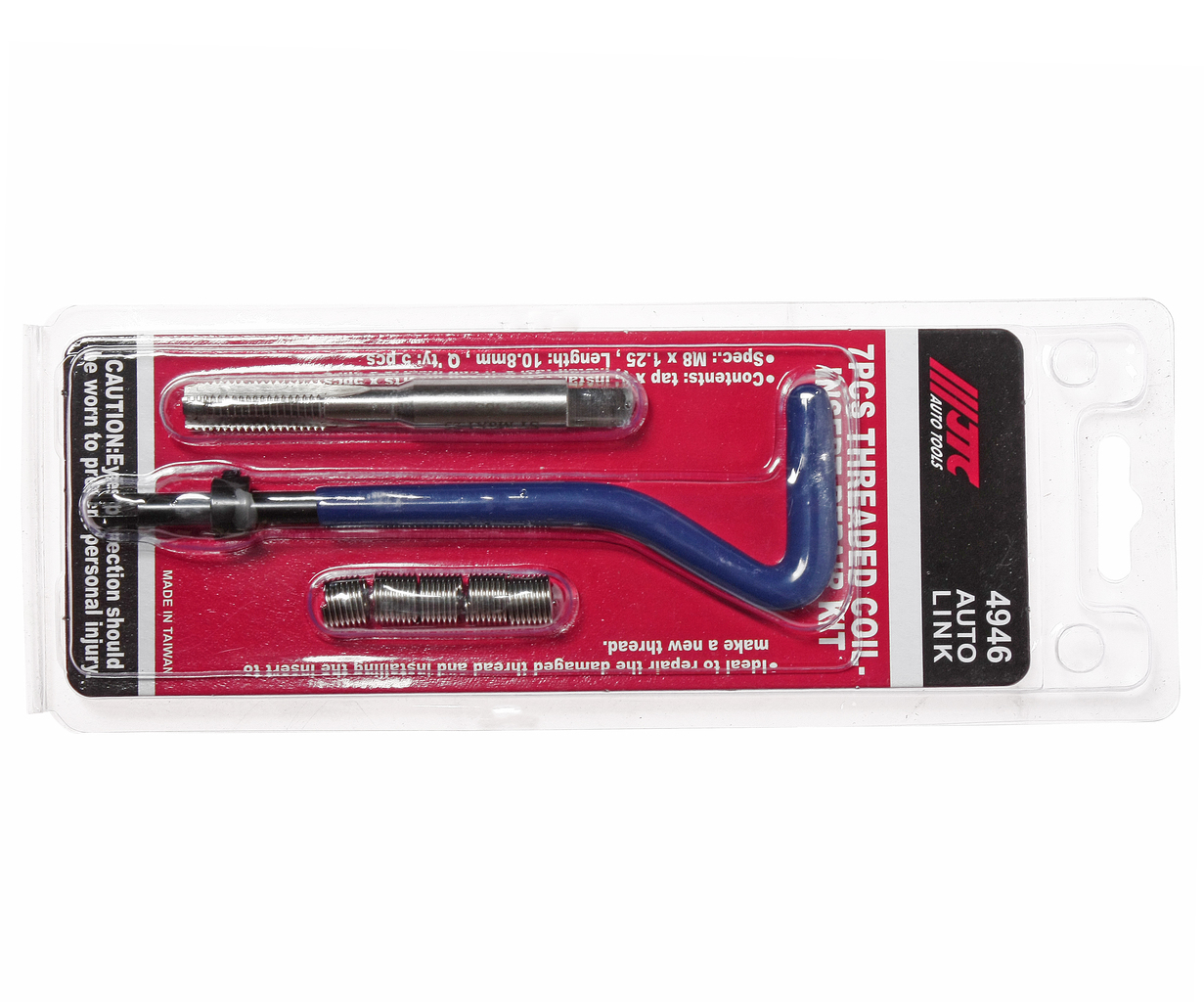 В комплект входят: метчик, установочный инструмент, инструмент для обламывания хвостовика, резьбовые вставки