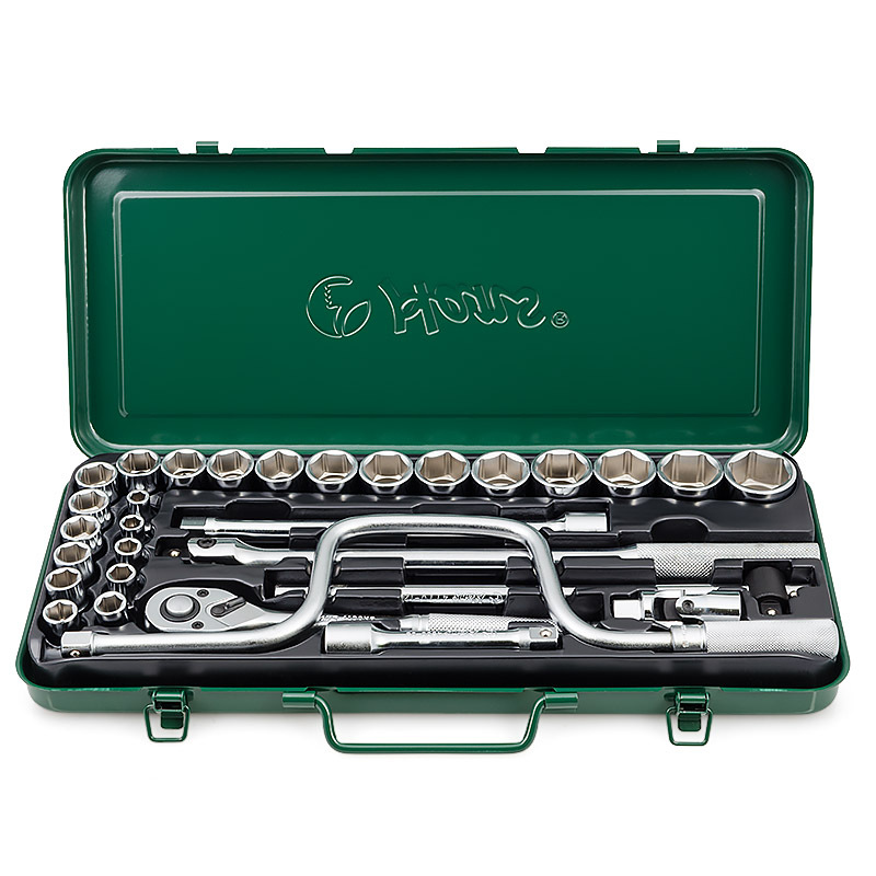 Набор инструментов 1/2' 8-32 мм (30 предметов) Головки торцевые: (8, 9, 10, 11, 12, 13, 14, 15, 16, 17, 18, 19, 20, 21 ,22, 23, 24, 25, 26, 27, 28, 30, 32 мм) – 23 шт Ключ трещоточный с быстрым сбросом, длина 250 мм/10' - 1 шт Шарнир карданный, длина 70 мм/2-3/4' – 1 шт Вороток шарнирный, длина 380 мм/15' – 1 шт Вороток Т-образный, длина 300 мм/12' – 1 шт Удлинитель, длина 125, 250 мм/5', 10' – 2 шт Коловорот, длина 420 мм/16-1/2' – 1 шт