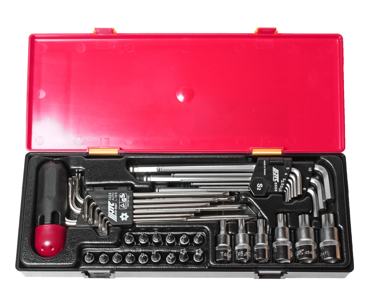JTC-3924: набор г-образных ключей TORX с отверстием: T10H, T15H, T20H, T25H, T27H, T30H, T40H, T45H, T50H + рукоятка - 10 шт.
