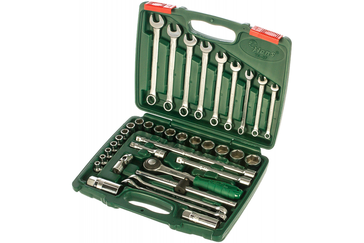 Универсальный набор инструментов Hans 37 предметов TK-37 представляет собой комплект изделий, который подойдет для обслуживания крепежных элементов автомобиля. Пластиковый кейс предназначен для хранения и транспортировки изделий. Рабочие части изготовлены из прочной стали и обладают стойкостью к возникновению коррозии. Рукоятка трещотки выполнена из пластика.
