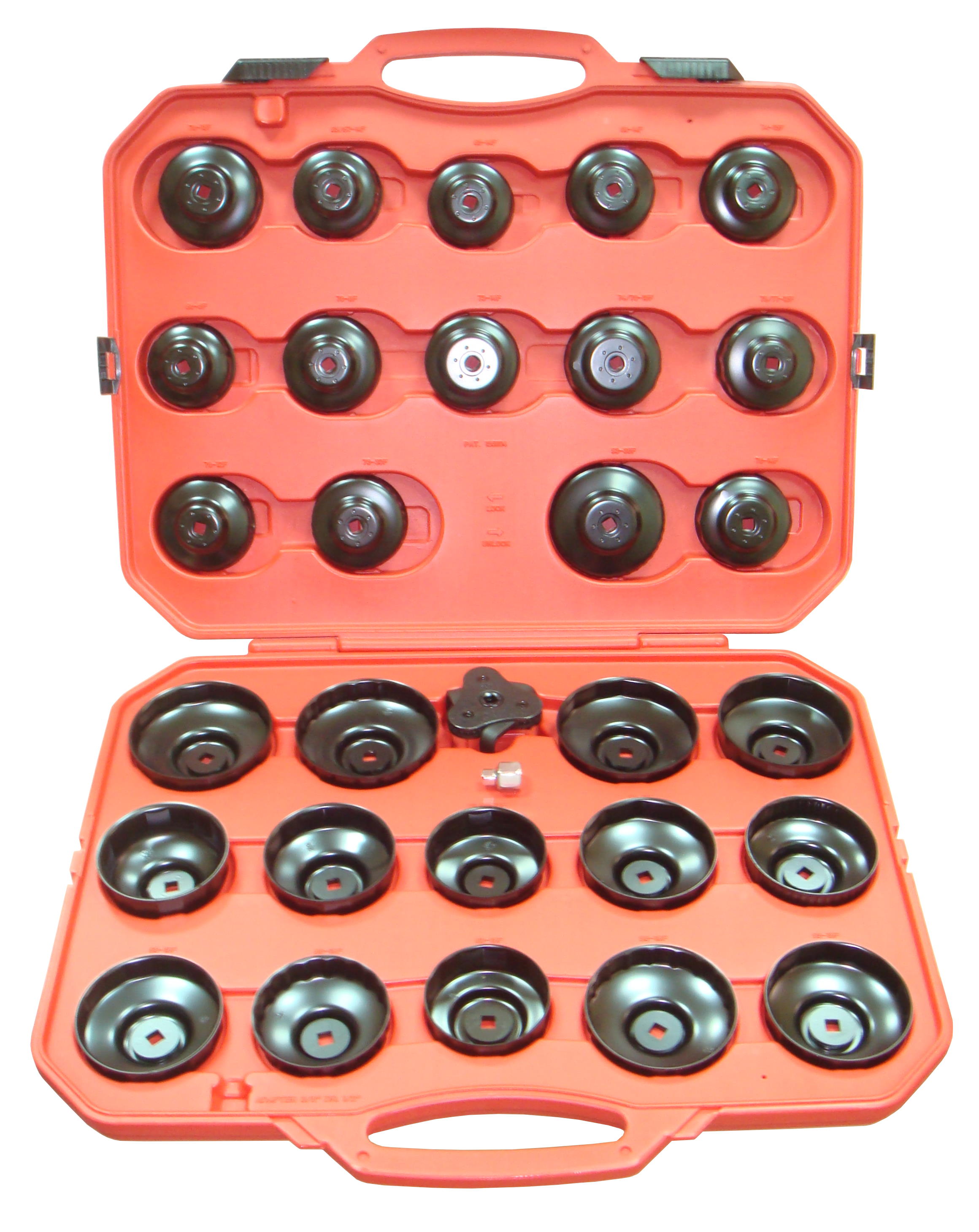 KA-4424K Набор ключей для масляных фильтров, 30 предм., 1/2" и 3/8". Съёмники изготовлены в форме чашек из штампованной инструментальной стали. Для предотвращения появления коррозии, каждый съёмник покрыт порошковой эмалью. Съёмники способны выдерживать большие нагрузки. Каждая чашка снабжена усиленной площадкой с посадочным квадратом. Конструкция съёмников в форме чашек исключает повреждение масляного фильтра при его снятии и установке. Возможность использовать привод с посадочным квадратом 1/2"; 3/8"; гаечный ключ или торцевую головку на 21 мм. Для удобства на каждой чашке имеется маркировка её размера. Эта же маркировка дублируется на ячейке хранения в кейсе. В комплекте есть так же универсальный трёх-лапый съёмник типа «краб». Комплектность: Съёмники-чашки: ∅ 65мм (2-9/16") 14 граней — 1 шт. Подходит для Champ, Hastings, GM/AC, Wix, NAPA, Purolator, Daihatsu, Toyota ∅ 65, 67мм (2-9/16", 1-21/32") 14 граней — 1 шт. Подходит для фильтров No 785, так же для фильтров производства Канада, включая PH4386, PH4967, PH6017, PH6018 ∅ 68мм (2-11/16") 14 граней — 1 шт. Подходит для Hastings, Mazda, Ford Escort, Capri, Subaru, Fran PH6607 (Фильтры, производства Корея), Motorcraft FL816 ∅ 73мм (2-7/8") 14 граней — 1 шт. Подходит для Toyota/Lexus ∅ 74мм (2-29/32") 15 граней — 1 шт. Подходит для Audi, GM.Rover. Chrysler ∅ 74, 76мм (2-29/32", 3") 15 граней — 1 шт. Подходит для Fram, AC, Saturn, Opel, Ford, VW, Audi, Mercedes Benz ∅ 75, 77мм (2-15/16", 3-1/32") 15 граней — 1 шт. Подходит для Casite, GM/AC, Hastings, Wix, Napa, Ford, Isuzu, Mercedes Benz, Opel ∅ 76мм (3") 12 граней — 1 шт. Подходит для Fiat (Ducato, Scudo, Ulysee), Renault, (Megane. Laguna. Espace III.) Mercedes ∅ 76мм (3") 14 граней — 1 шт. Подходит для Champion, Champ Lee, Purolator, Mopar, VW, Porsche, Mercedes Benz, BMW, Audi,(I.B.A3TD) Opel ∅ 76 (3") 30 граней — 1 шт. Подходит для Motorcraft только FL-400A ∅ 76мм (3") 8 граней — 1 шт. Подходит для Fiat (z.B. Marea), Lancia (z.B. Delta) ∅ 78мм (3-2/32") 15 граней — 1 шт. Подходит для Nissan # 15205H8991, Ford, Toyota, Honda Accord ∅ 80мм (3-9/64") 15 граней — 1 шт. Подходит для Hastings, Fram, Purolator, Nissan, Honda, Motorcraft, Mazda, Isuzu, Subaru ∅ 80, 82мм (3-9/64", 3-7/32") 15 граней — 1 шт. Подходит для Wix, Mazda, Subaru, Toyota, Honda, Acura, Nissan, NAPA ∅ 86мм (3-3/8") 16 граней — 1 шт. Подходит для Volvo (S40, S60,S70,S80.) ∅ 86мм (3-3/8") 18 граней — 1 шт. Подходит для VW Golf (MKIII. Tdi, passat Tdi,) Audi A6 Tdi, Renault (Clio, Rapid 1.9D, Laguna, Safrane, Espace 2.1D), Citroen, Peugeot, Renault ∅ 90мм (3-17/32") 15 граней — 1 шт. Подходит для Honda Accord. Трехлапый съемник 63-102 мм. - 1 шт Кейс для хранения - 1 шт.