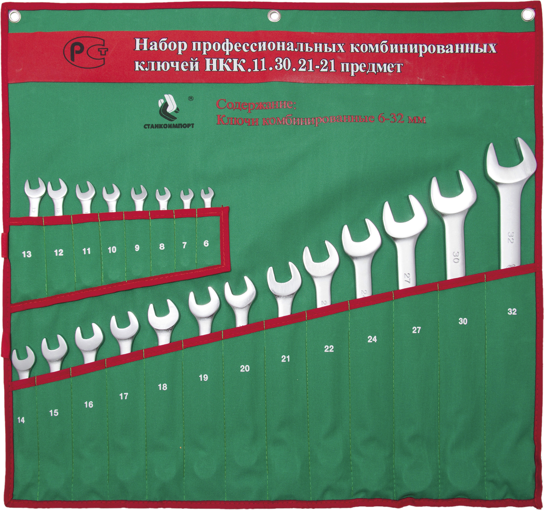 Наименование: Набор ключей СТАНКОИМПОРТ, НКК.11.30.21 Брэнд: СТАНКОИМПОРТ Состав: Ключи комбинированные 6, 7, 8, 9, 10, 11, 12, 13, 14, 15, 16, 17, 18, 19, 20, 21, 22, 24, 27, 30, 32 мм