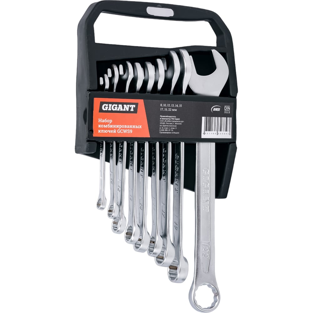 Набор комбинированных ключей 9 шт. Gigant, Сталь Cr-V, 8-22мм, GCWS9