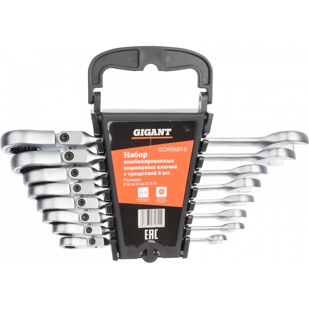 Набор комбинированных шарнирных ключей с трещоткой Gigant 8 шт, Сталь Cr-V, 8-19мм, GCWSMH 8