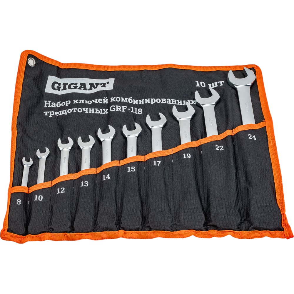 Набор комбинированных трещоточных ключей 10 шт Gigant, Сталь Cr-V, 8-24мм, grf-118