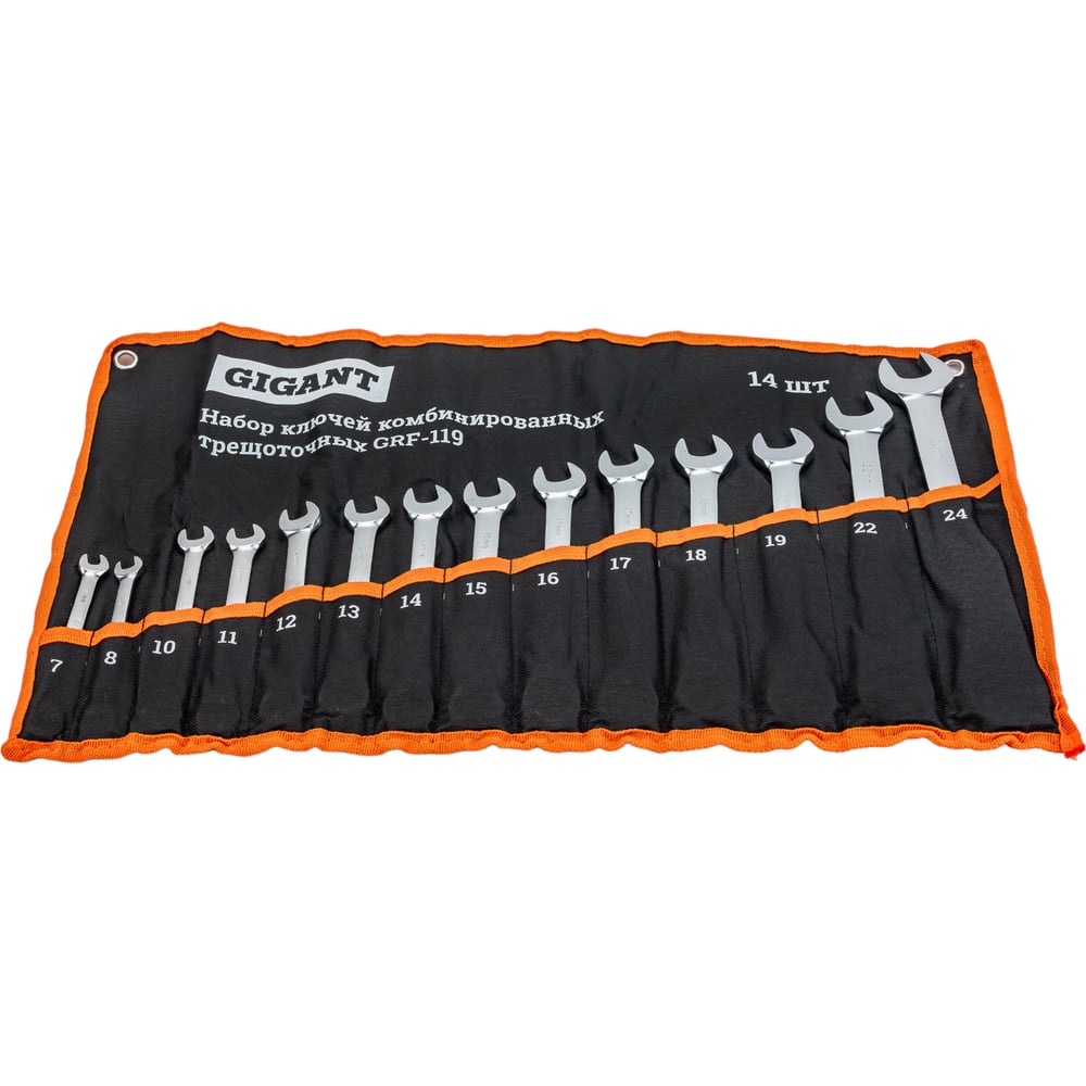Набор комбинированных трещоточных ключей 14 шт Gigant, Сталь Cr-V, 7-24мм, grf-119
