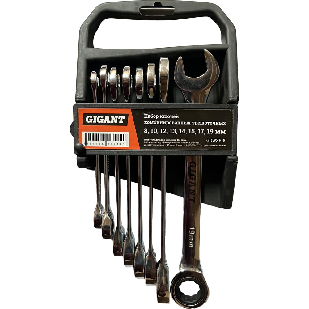 Набор комбинированных трещоточных ключей Gigant 8 шт, Сталь Cr-V, 8-19мм, GDWSP-8