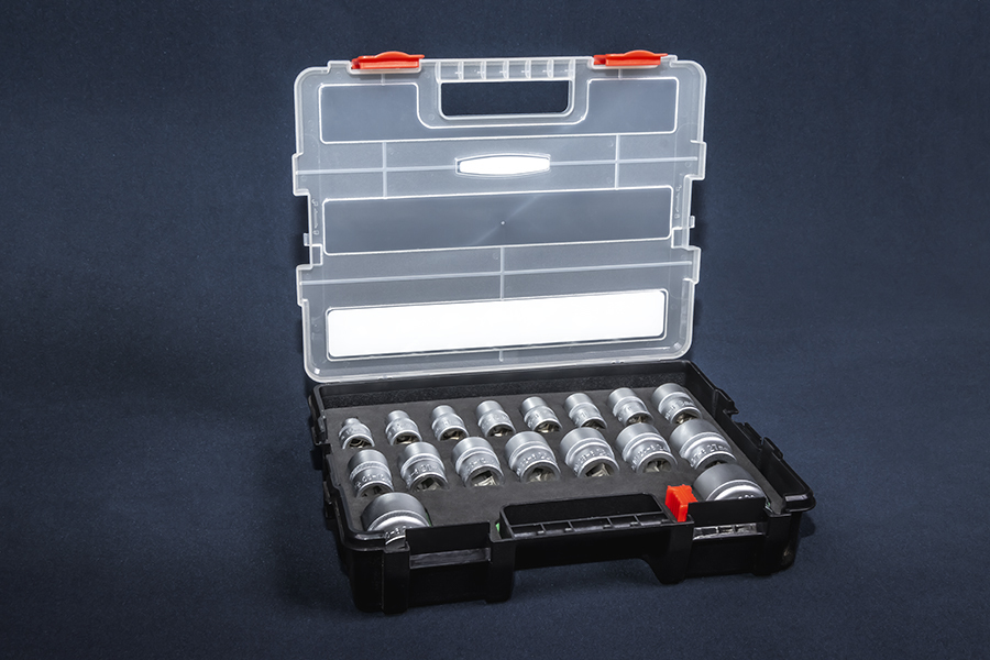 В состав набора торцевых головок входят следующие размеры: 10, 12, 13, 14, 15, 16, 17, 18, 19, 20, 21, 22, 23, 24, 27, 30, 32 мм. Торцевые головки предназначены для монтажа/демонтажа резьбовых соединений.