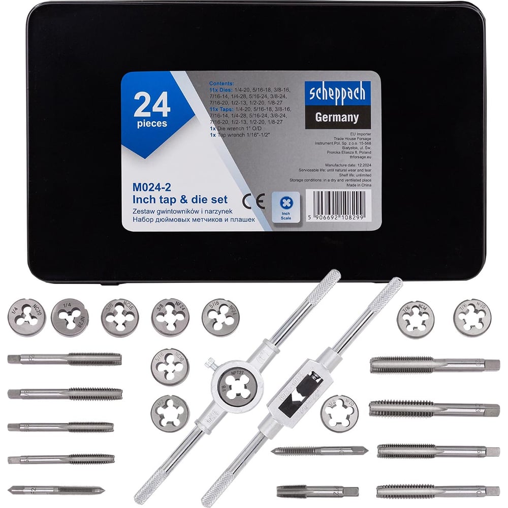 Набор метчиков и плашек Scheppach дюймовый 24 предмета (1/4, 5/16, 3/8, 7/16, 1/2) Sch-M024-2(64901)