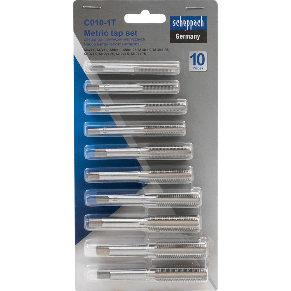 Набор метчиков метрический Scheppach 10 предметов (М6х1, М7х1, М8х1/1.25, М10х1/1.25/1.5, М12х1.25/1.5/1.75) Sch-C010-1T(64907)