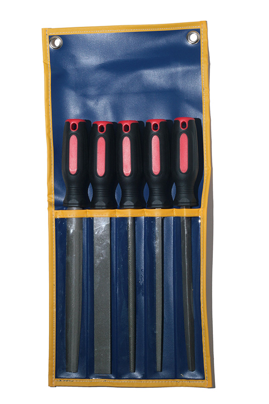 KA-F1012-8 Набор напильников 200 мм, 5 предметов. Используются для обработки металлических поверхностей. Широко применяются в слесарных мастерских, автосервисах, на производстве. Особенности: Идеальный угол режущих кромок обеспечивает точность обработки поверхности и удобство в работе. Эргономичная форма ручек и резиновое покрытие позволяет надёжно фиксировать инструмент в руке. Наличие отверстия в рукоятке позволяет при необходимости хранить инструмент на крючке. Удобный чехол для хранения с металлическими люверсами и прозрачными карманами для визуального восприятия типа (формы) напильника. Длина рабочей поверхности: 200 мм. Общая длина каждого напильника: 305 мм. Комплект набора: Напильник полукруглый №1, 200мм - 1 шт. Напильник прямоугольный №2, 200мм - 1 шт. Напильник круглый №2, 200мм - 1 шт. Напильник квадратный №2, 200мм - 1 шт. Напильник треугольный №2, 200мм - 1 шт. Чехол из кожзаменителя - 1 шт. При работе инструментом обязательно используйте защитные очки!