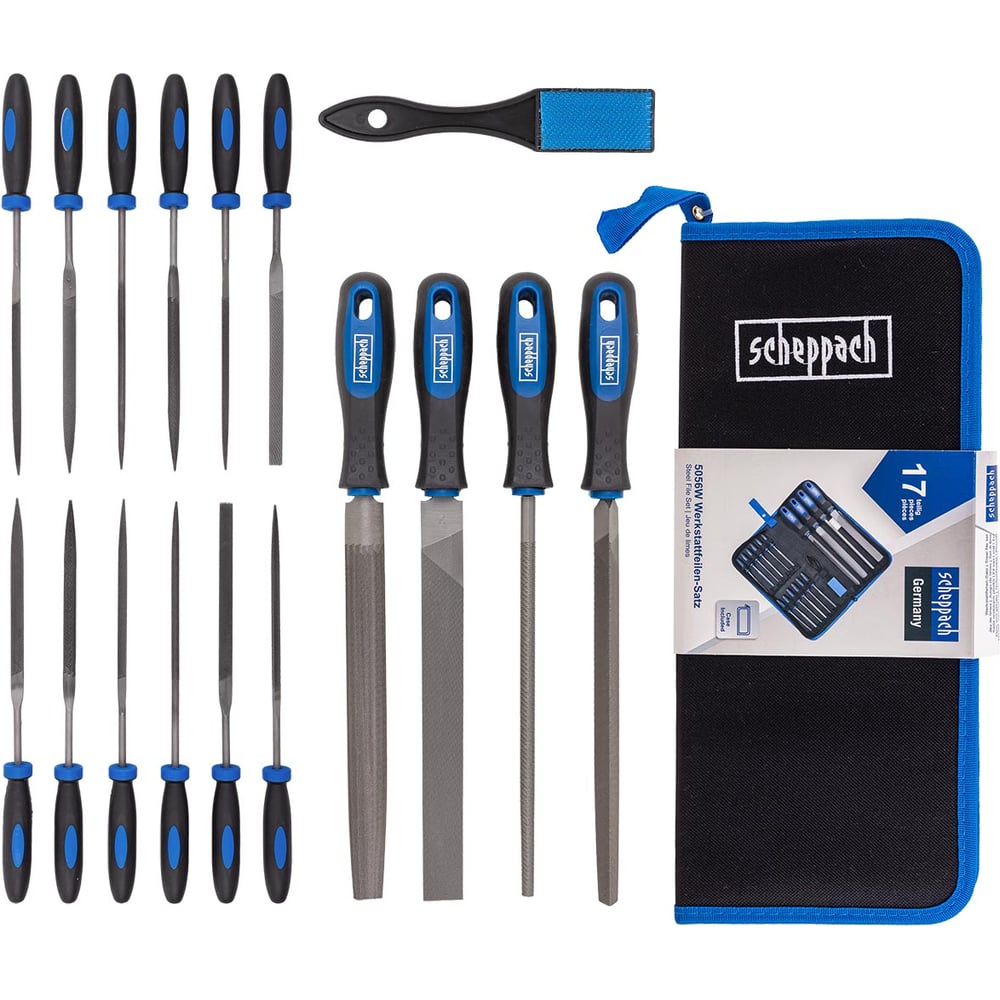 Набор напильников и надфилей разнопрофильных Scheppach 17пр (плоск, треуг, квадр, круг, полукруг, L-100мм,L-200мм) в чехле Sch-5056W(60325)