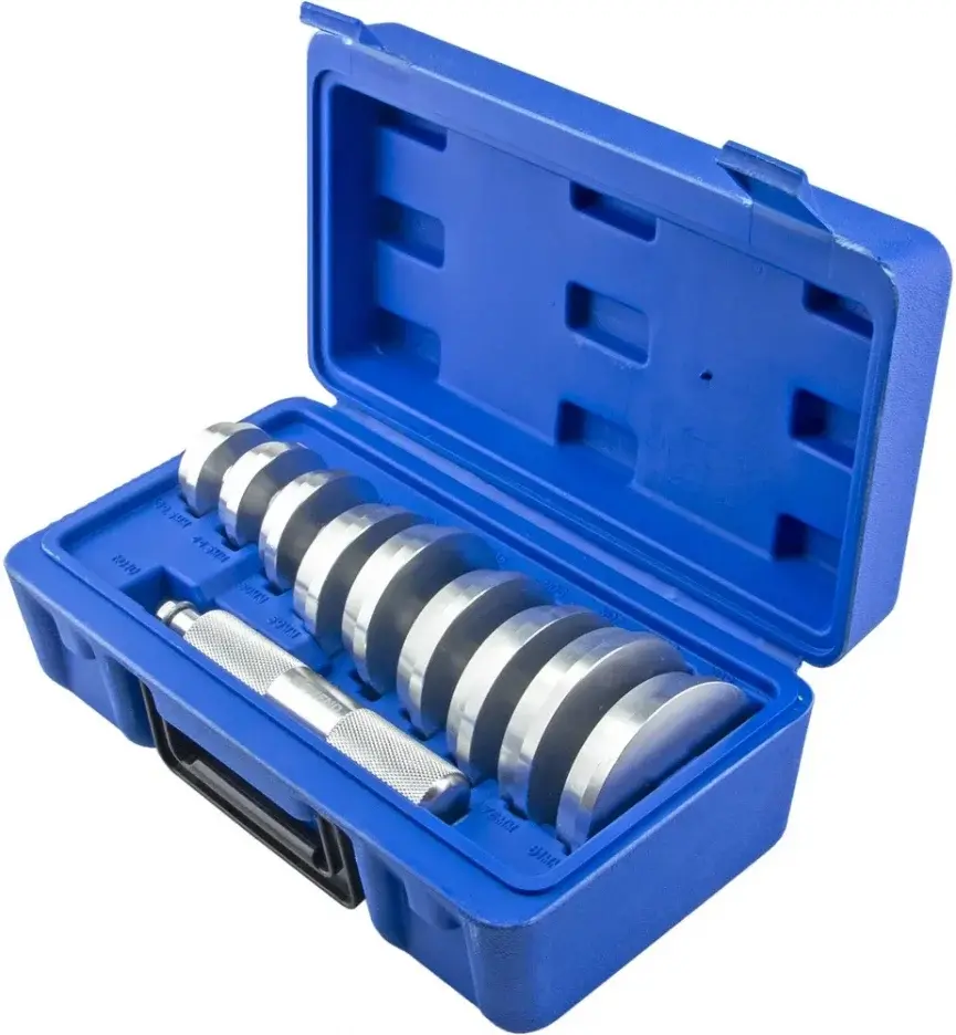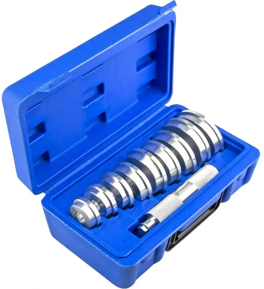 - Оправки для запрессовки 39.5, 44.5, 50, 59, 63, 65, 72, 76, 81 мм - 9 шт.;