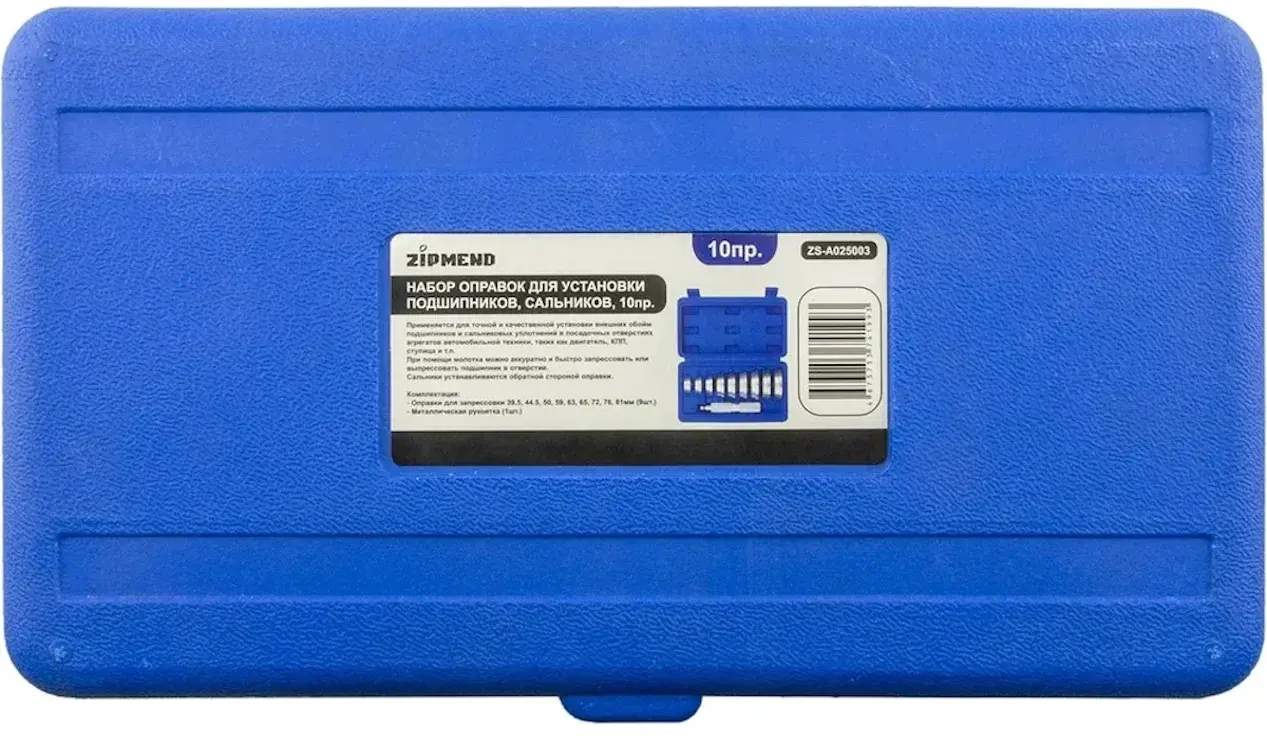 - Специнструмент ZS-A025003 ZIPMEND применяется для точной и качественной установки внешних обойм подшипников и сальниковых уплотнений в посадочных отверстиях агрегатов автомобильной техники, таких как двигатель, КПП, ступица и т.п.