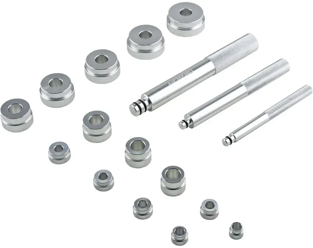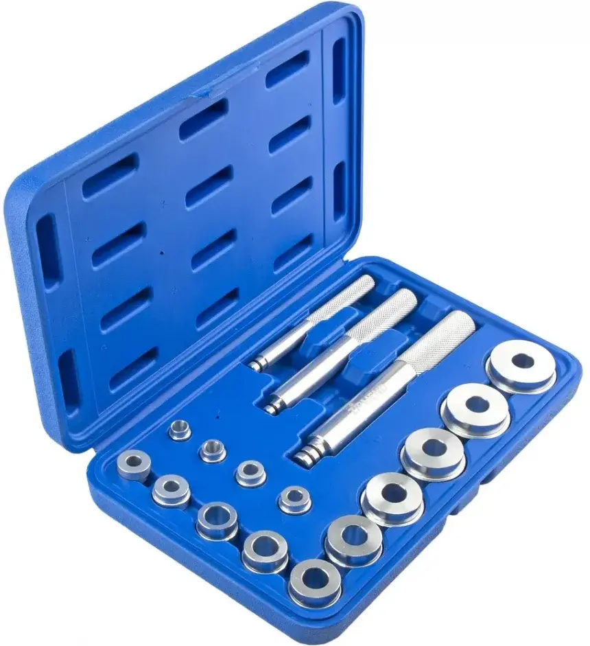 - Оправки для запрессовки: 10х12, 12х14, 14х16, 15х17, 16х18, 18х20, 20х22, 22х24, 25х27, 28х30, 30х34, 32х36, 35х40, 38х42 мм - 13 шт.