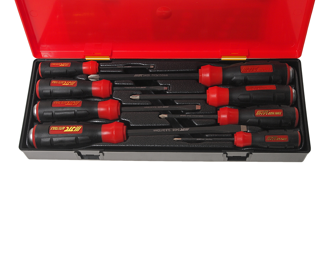 JTC-5447, 5449, 5406, 5408: отвертки SL: минус 3x75 мм., 5x75 мм., плюс 6х100 мм., 8х150 мм. - 4 шт.