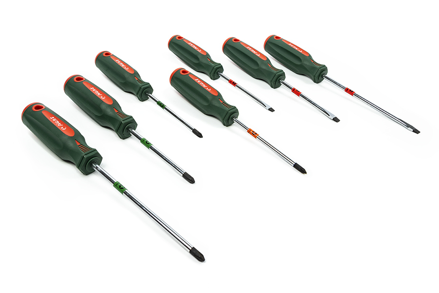 Набор отверток шлиц и крест 7 предметов (06400-7M). Состав набора: отвертки шлицевые: 5,5х100, 6,5х100, 6,5х150; отвертки Philips PH 1x100; PH 2x100, PH 2x15; отвертки Pozidriv PZ 1x100(4'). Количество в наборе: 7шт.