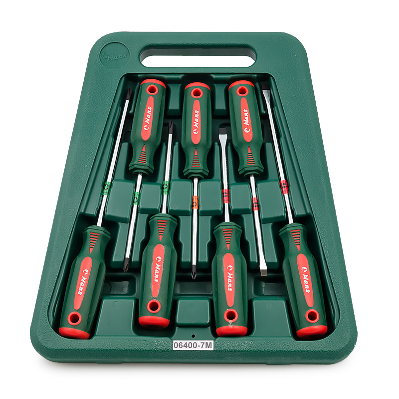Набор отверток HANS в кейсе 7пр., 06400-7M Шлицевые: 5.5х100, 6.5х100, 6.5х150 мм Крестовые: PH1х100, PH2х100, PH2х150 Pozidrive: PZ1х100