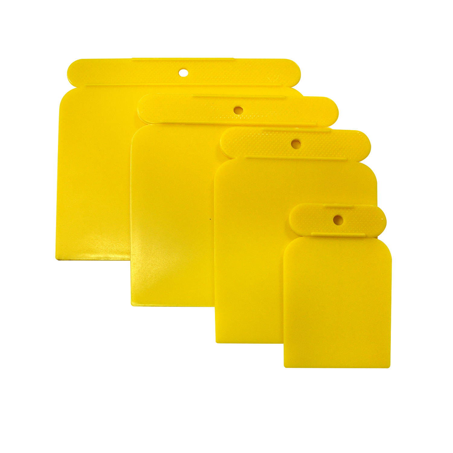 Набор пластиковых шпателей TOP.10 шириной 50, 80, 100 и 120 мм. Шпатели изготовлены из устойчивой к органическим растворителям пластмассы.