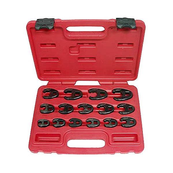 Набор включает в свой состав разрезные ключи-насадки, назначение которых – работа с крепежом, находящимся на трубках, длинных шпильках и прочим крепежом, где применение другого вида инструмента невозможно. Такой тип ключей часто называют "воронья лапка".