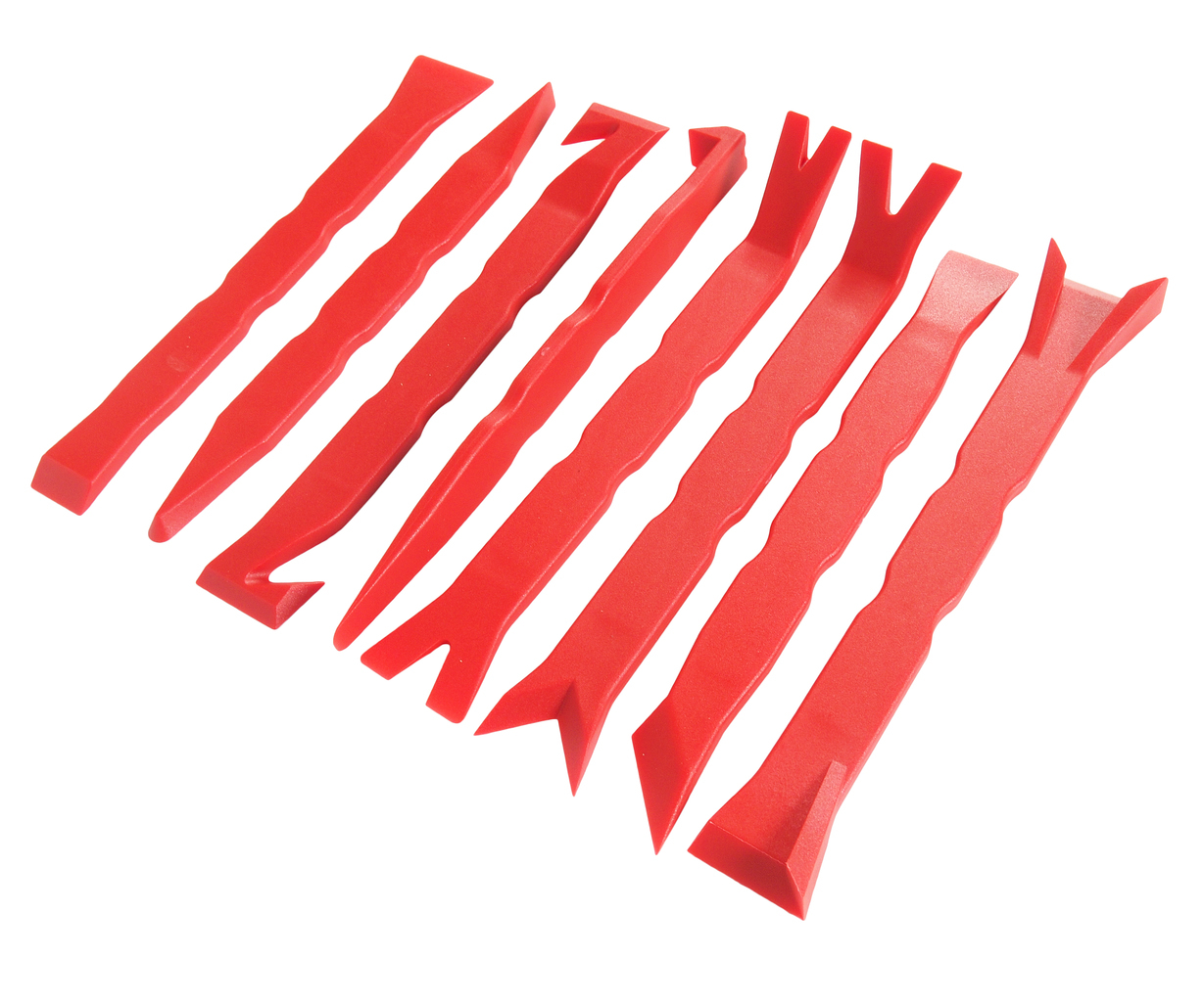 Уникальная форма инструментов позволяет легко демонтировать различные клипсы, панели и прочие пластиковые элементы приборной панели не повреждая поверхность.