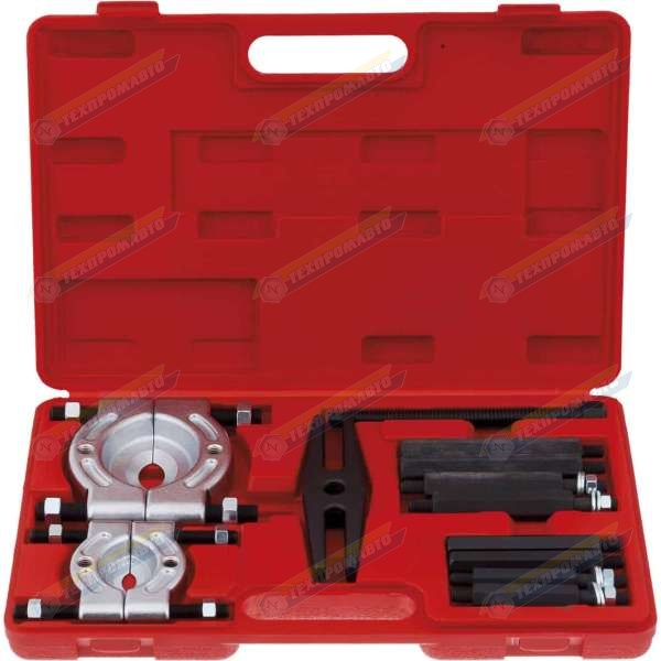 KA-1311-1 набор съемников подшипников сепараторного типа. Применяется для демонтажа подшипников конического, шарикового и роликового типа. Особенности: Острые внутренние кромки сепаратора позволяют осуществить демонтаж даже плотно посаженных деталей. Наличие удлинителей позволяет использовать съёмник для демонтажа подшипников, напрессованных на ось большой длины. Широкий диапазон применения благодаря наличию двух сепараторов. Комплект набора: Сепаратор 30 мм – 50 мм (KA-1001) - 1 шт. Сепаратор 50 мм – 75 мм (KA-1002) - 1 шт. Опорные боковые оси 91 мм - 2 шт. Опорные боковые оси 113 мм - 2 шт. Удлинители боковых осей 62 мм - 2 шт. Удлинители боковых осей 83 мм - 2 шт. Центральный шток-толкатель 180 мм - 1 шт. Инструкция - 1 шт. Кейс для хранения - 1 шт.