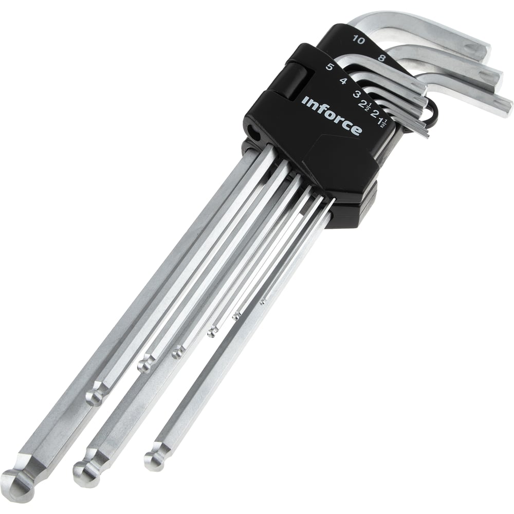 Набор шестигранных экстра-длинных ключей с шаром 9 штук Inforce, размеры 1,5-10мм, 06-05-95