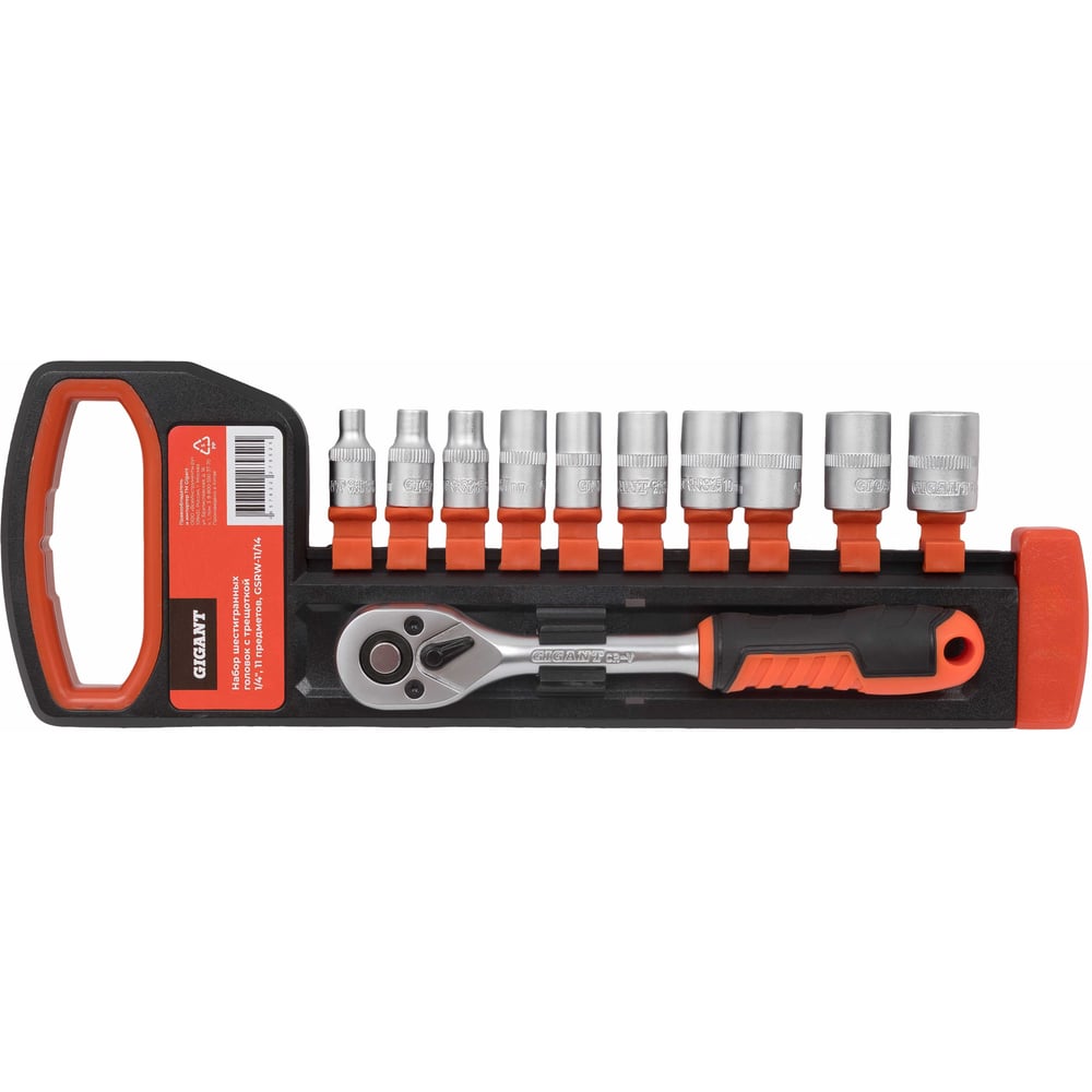 Набор шестигранных головок Gigant с трещоткой 1/4", 11 предметов GSRW-11/14