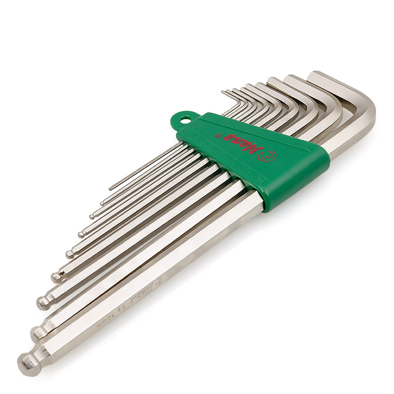 16772-9M набор Г-шестигранников 1.5-10мм 9шт Комплект сверхдлинных шестигранников угловых с шарообразным наконечником в пластмассовой обойме (9 предметов) 1.5, 2, 2.5, 3, 4, 5, 6, 8, 10 мм