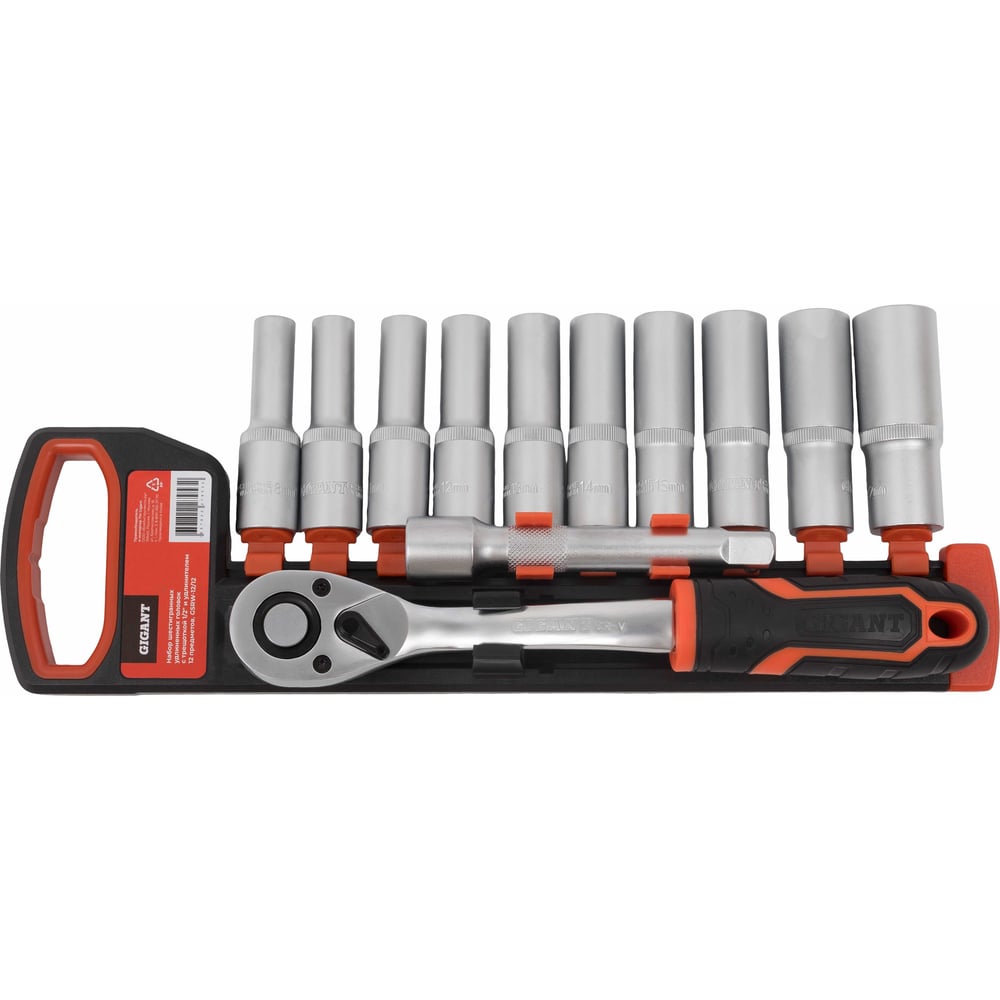 Набор шестигранных удлиненных головок Gigant с трещоткой 1/2" и удлинителем, 12 предметов GSRW-12/12