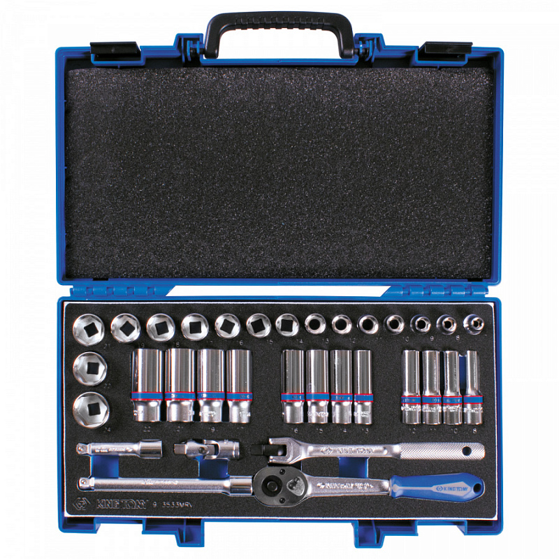 Набор торцевых головок с принадлежностями 3/8"", шестигранные, 7-24 мм, 33 предмета