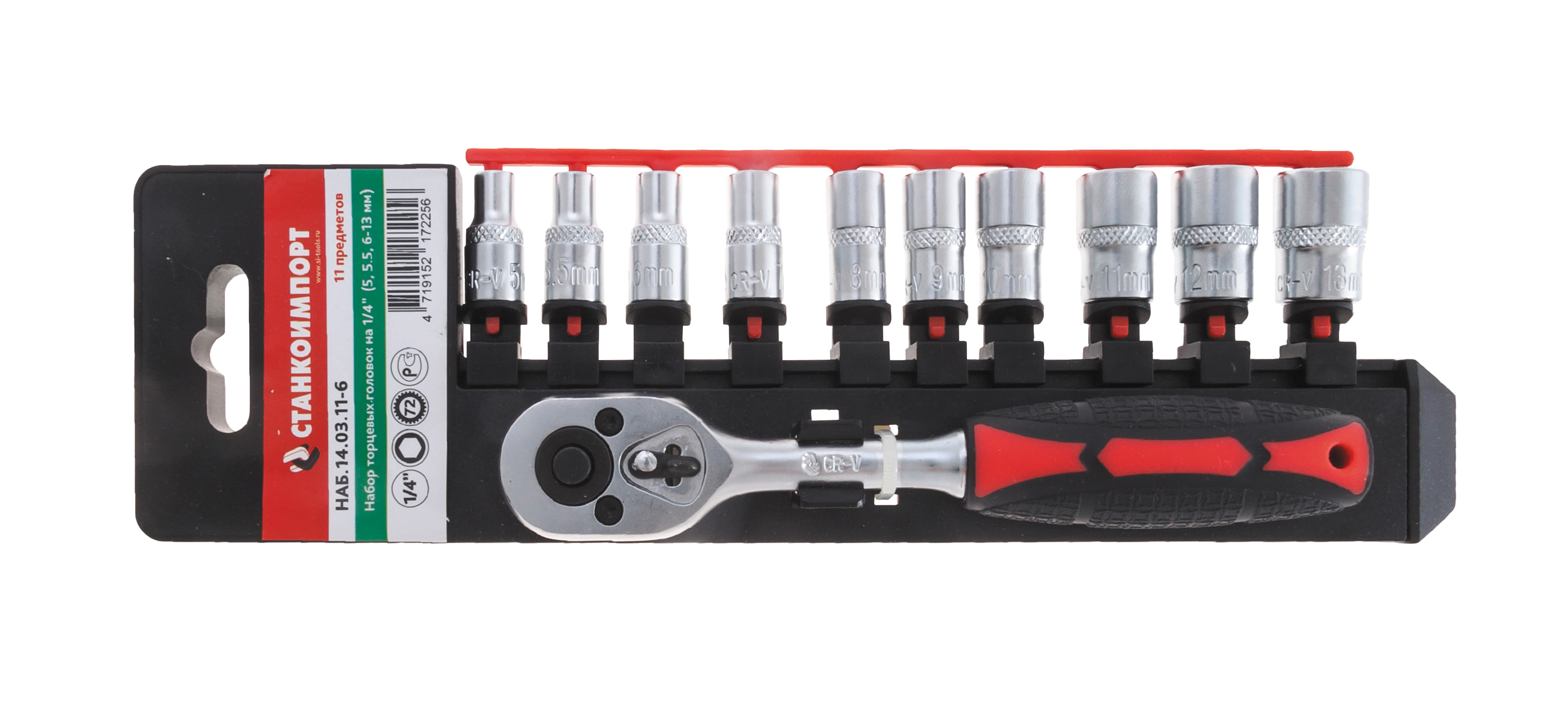 НАБ.14.03.11 Набор головок Superlock трещотка 1/4" головки торцевые шестигранные 1/4": 5, 5.5, 6, 7, 8, 9, 10, 11, 12, 13 мм