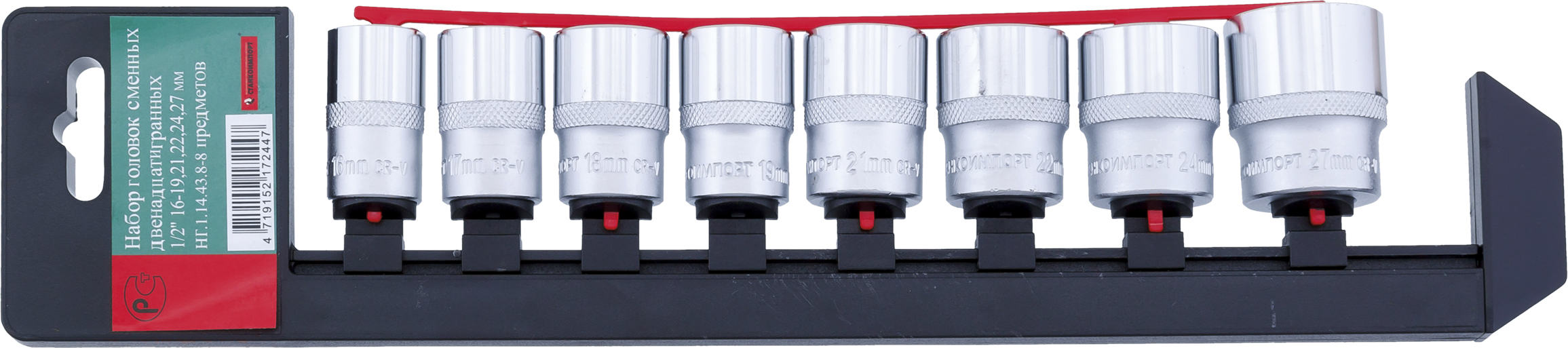 головки торцевые шестигранные 1/2", 16, 17, 18, 19, 21, 22, 24, 27 мм (8 предметов)