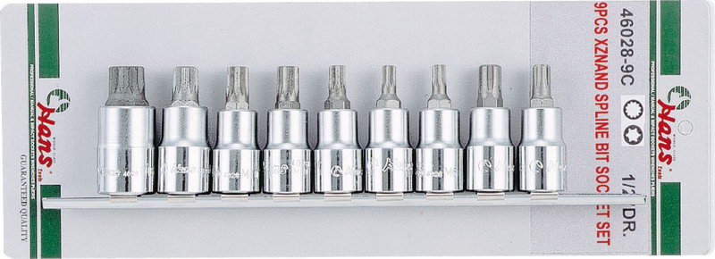 6028-9C набор головок XZN, RIBE на 1/2" 9 пр. на рельсе 4028 торцевая головка 1/2'' со вставкой XZN M5, M6, M8, M10, M12, M14, M16 4029 торцевая головка 1/2'' со вставкой RIBE M8, M10