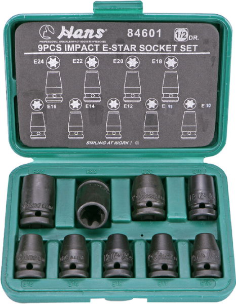 84601 комплект ударных головок 1/2" E10-E24 9шт E10, E11, E12, E14, E16, E18, E20, E22, E24