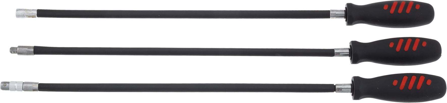Набор включает в себя приспособления необходимых для проведения работ в условиях ограниченного пространства, а именно: - гибкий удлинитель длиной 500 мм. с отверточной рукояткой для головок с посадочным квадратом ¼ Для надежного удержания головки присоединительный квадрат снабжен шариковым фиксатором. Ручка изготовлена из полимера устойчивого к воздействию агрессивных сред. - гибкий удлинитель длиной 500 мм. с отверточной рукояткой для бит стандарта ¼ (6.35 мм) Надежное удержание биты обеспечивает шариковый фиксатор. Ручка изготовлена из полимера устойчивого к воздействию агрессивных сред. - гибкий магнитных захват длиной 500 мм с отверточной рукояткой. Благодаря неодимовому магниту на конце, позволяет доставать крепеж, инструмент и прочие выпавшие из рук предметы из самых труднодоступных мест. Ручка изготовлена из полимера устойчивого к воздействию агрессивных сред.