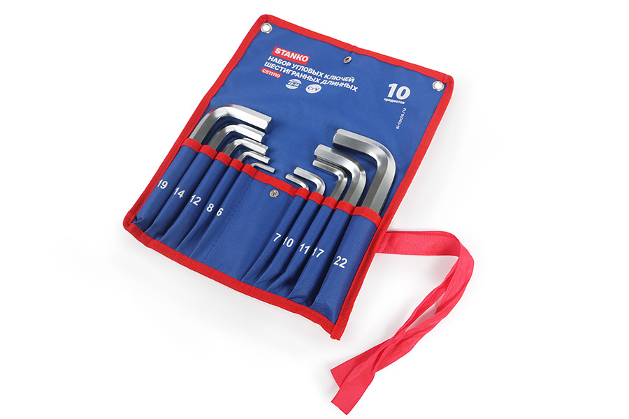 Набор угловых шестигранных ключей, состоит из 10 L-образных ключей, имеющих профиль HEX.