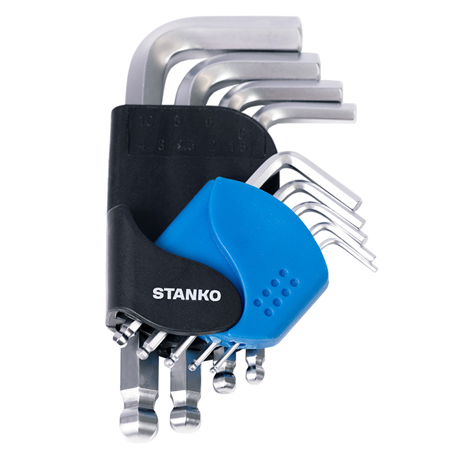 Набор угловых шестигранных ключей, состоит из 9 L-образных ключей, имеющих профиль HEX.