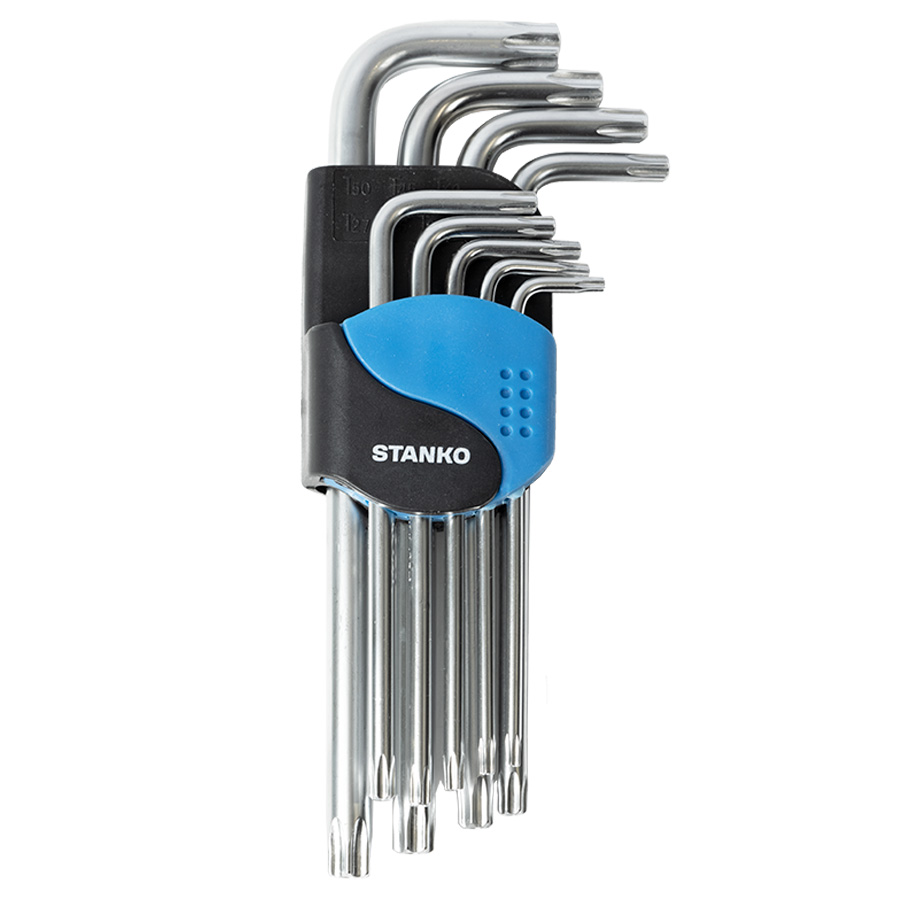 body{margin:0;padding:8px;} p{line-height:1.15;margin:0;white-space:pre-wrap;} ol,ul{margin-top:0;margin-bottom:0;} img{border:none;} li>p{display:inline;} Описание Набор Набор угловых ключей Torx, состоит из 9 L-образных ключей, имеющих профиль TORX. Назначение Предназначены для работы с крепежом с внутренним профилем TORX. Монтаж / демонтаж крепежа различных изделий, устройств и агрегатов. Применяется на станциях технического обслуживания (СТО), автосервисах, автомастерских, в промышленности, производстве, строительстве. Особенности Двусторонний профиль ключа позволяет применять его в различных положениях и в труднодоступных местах. Пластиковый держатель поможет удобно разместить набор в районе рабочего места, а также держать инструменты набора в порядке и сохранности. Набор включает в себя ключи следующих размеров: T10, T15, T20, T25, T27, T30, T40, T45, T50. Качество Ключи изготовлены из высококачественной инструментальной легированной хром-ванадиевой стали. Технология горячей ковки и термической обработки ключей придаёт им особую прочность и высокую надёжность. Гарантия На угловые ключи бренда STANKO действует гарантия 12 месяцев.