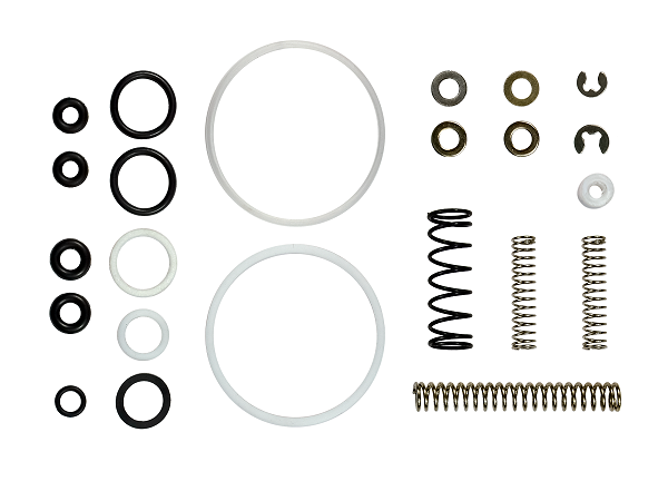 Набор уплотнений для пневматических краскопультов Huberth модели RP123FLG. В набор входят уплотнительные и стопорные кольца, пружины, сальники.